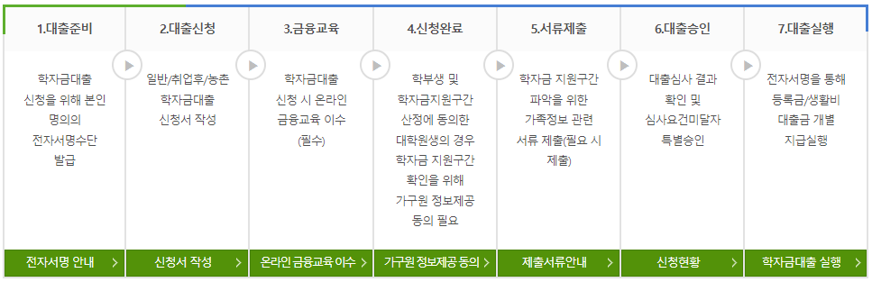 - 실행가능시간: 9시부터 17시까지(단, 등록금대출, 학점은행제 학습자 학자금대출은 대학(기관) 및 은행별 수납 마감기간/시간 내 실행 필수)