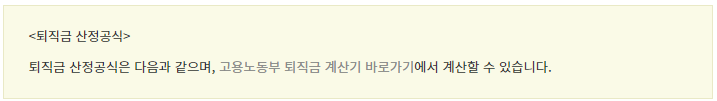 ▶ 본인의 퇴직금이 얼마인지 궁금하신 분은 아래의 "퇴직금 계산 바로가기" 및 "고용노동부 퇴직금 바로가기"로 이동하여 확인하실 수 있습니다.
