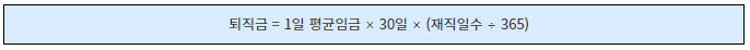 ▶ 고용주는 퇴직하는 근로자에게 계속근로기간 1년에 대해 30일분 이상의 평균임금을 퇴직금으로 지급해야 합니다.
