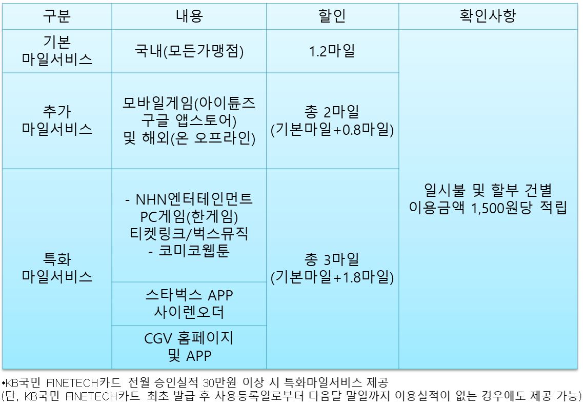 여행을 좋아하시는 분이라면 마일리지를 적립할 수 있는 KB국민카드 파인테크카드를 소개합니다.
