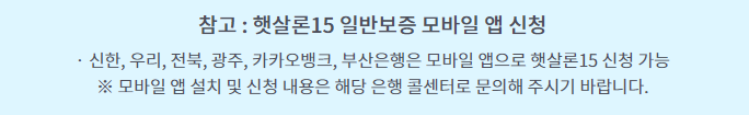 - 반복이용: 햇살론15 상환 완료 후 횟수 제한 없이 여러 번 이용 가능
